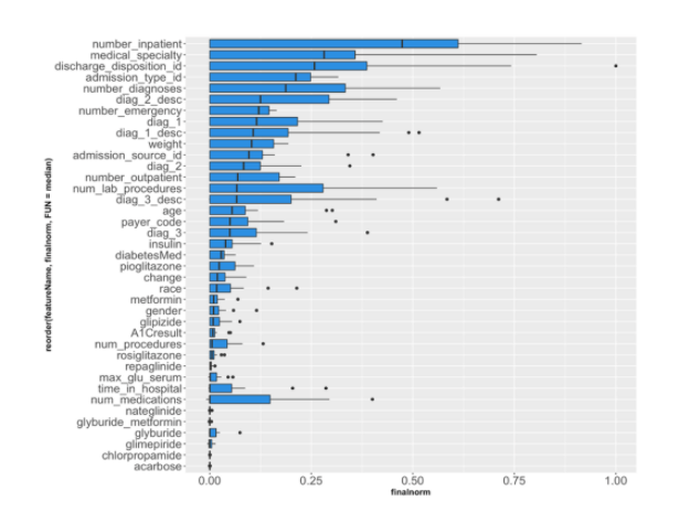 p <- ggplot(all_impact, aes(x=reorder(featureName, finalnorm, FUN=median), y=finalnorm))