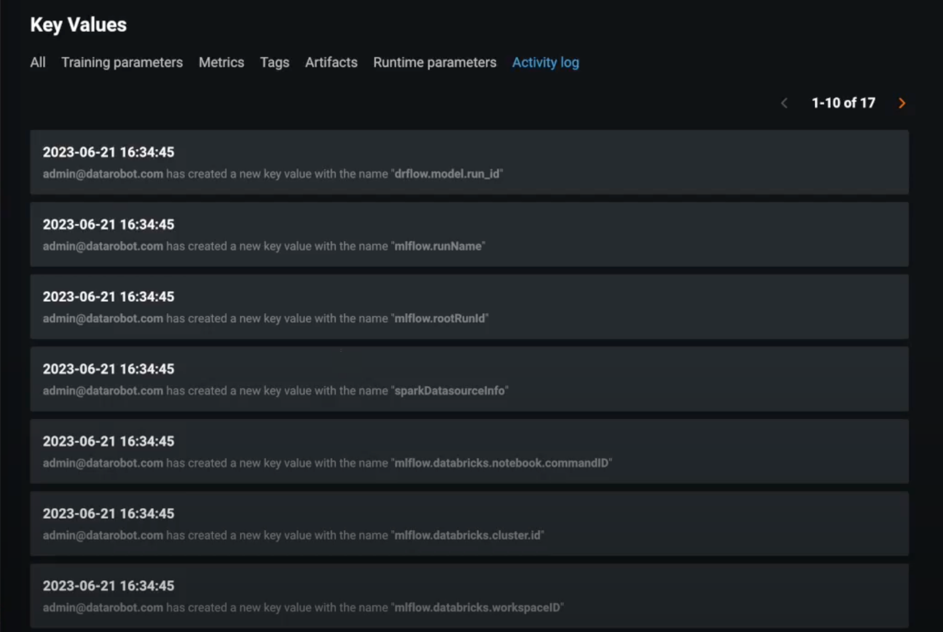 The MLflow integration for DataRobot allows you to export a model from MLflow and import it into the DataRobot Model Registry, creating key values from the training parameters, metrics, tags, and artifacts in the MLflow model.