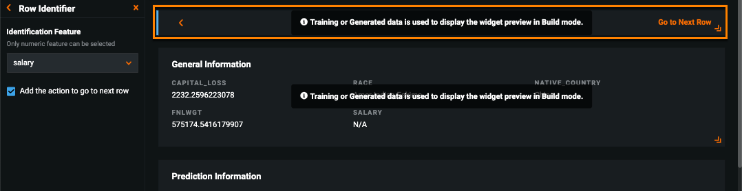 With the Row Identifier widget selected, you can choose the association ID from the dropdown on the left to display this value on the prediction results page for each prediction.