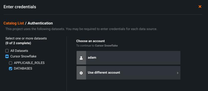 - Snapshotted datasets created from JDBC data connections.