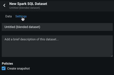 To create a new blended dataset, select Spark SQL from the Add menu: