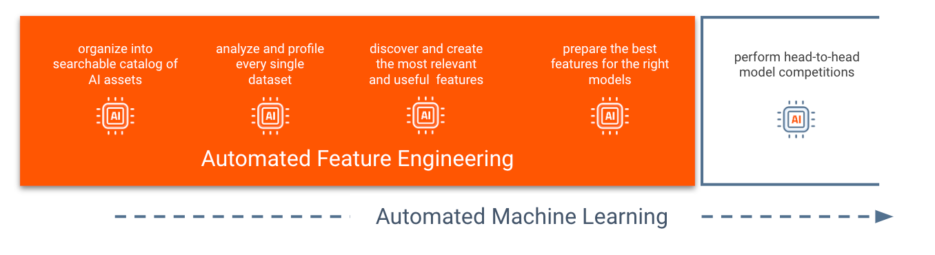 Feature engineering is the process of preparing a dataset for machine learning by changing existing features or deriving new features to improve model performance. Automated Feature Engineering uses AI to accelerate the transformation of data into machine learning assets, allowing you to build better machine learning models in less time.