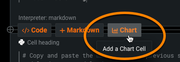 To add a code cell, hover your cursor outside of a cell in the notebook and select the Chart option.