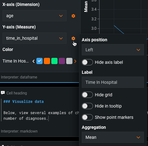 | Aggregation | Sets whether to aggregate values for the axis. You can aggregate by a variety of values, including the median, mean, sum, standard deviation, and more. |