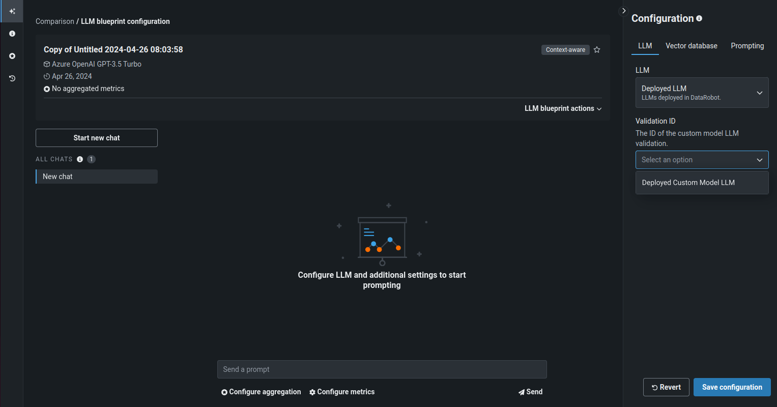 When you make changes to an LLM blueprint, the chat history associated with it, if the configuration is context-aware, is also saved. All the prompts within a chat persist through LLM blueprint changes: