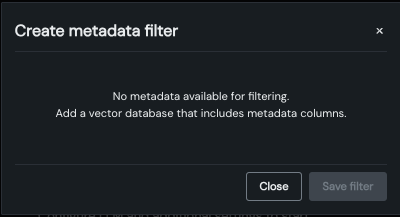 If the LLM blueprint configuration does not include a vector database, clicking Filter metadata displays the following: