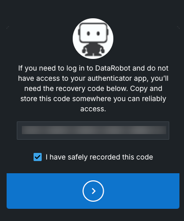 DataRobot provides a series of recovery codes for use if you lose access to your default authentication method.