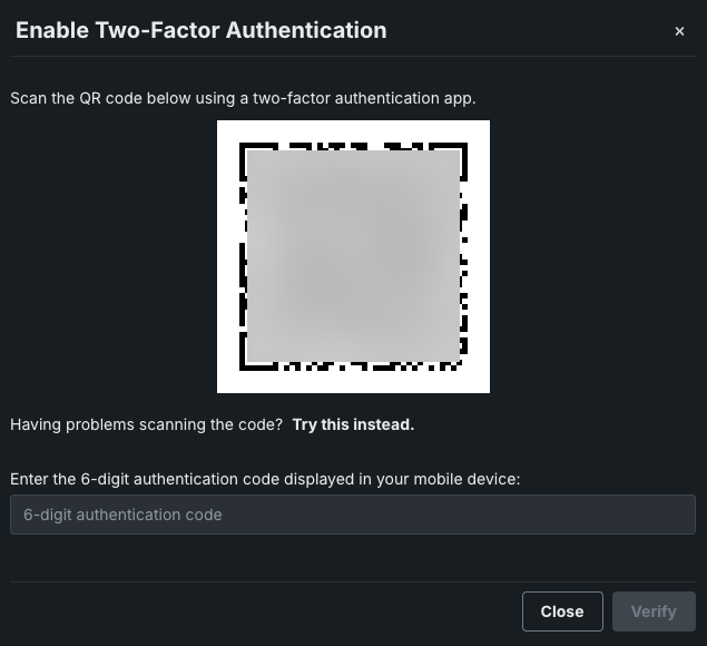 Enter the recovery code provided when you configured two-factor authentication and click Verify. Return to step 4 of "Set up 2FA", above. Or, if you receive an error, see the troubleshooting section.