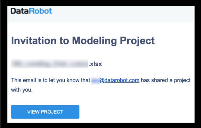 When sharing is successful, DataRobot sends the recipient(s) a notification email containing a link to the shared asset. Once clicked, the asset (or a log in prompt) opens in DataRobot.