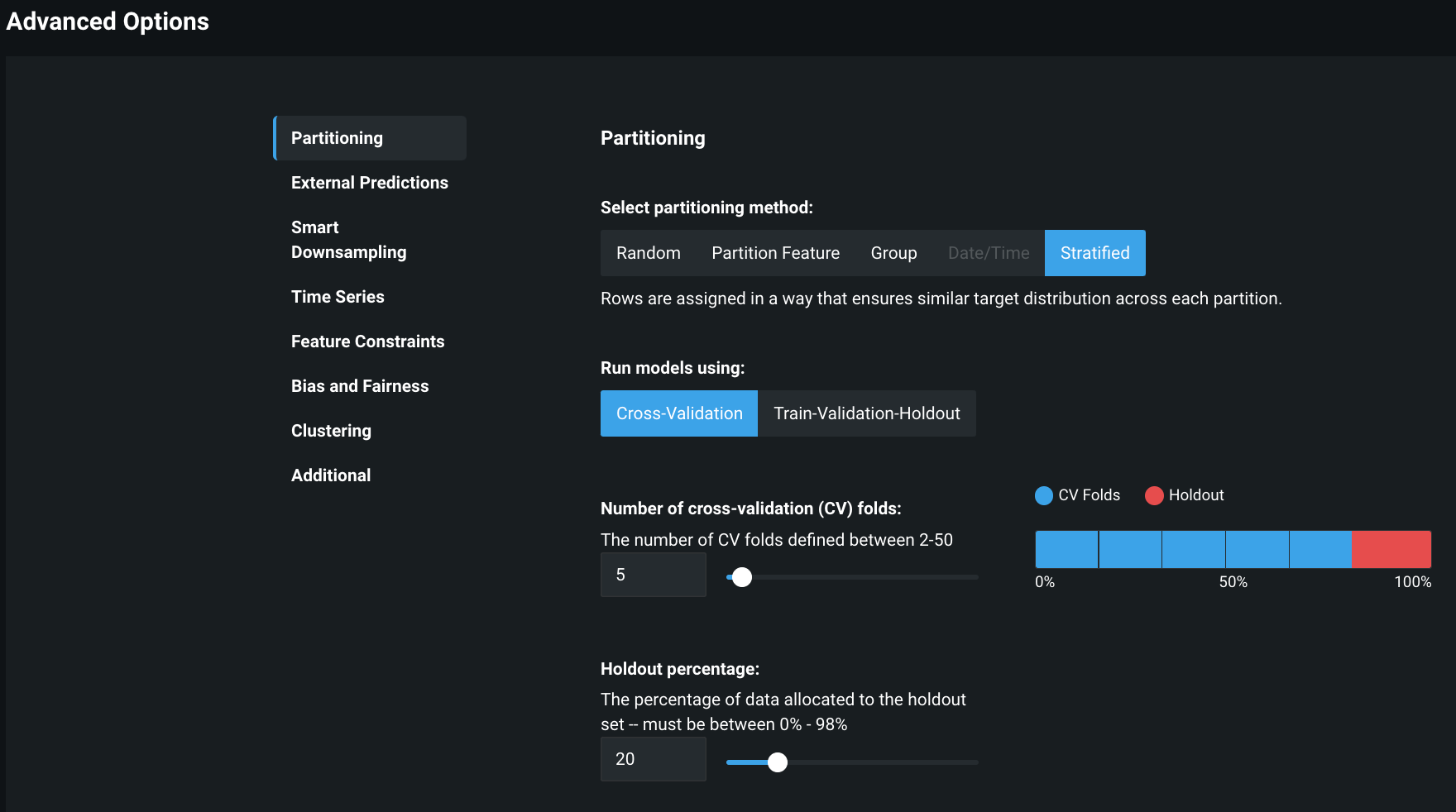 | 6 | Show advanced options | Specify modeling options such as partitioning, bias and fairness, and optimization metric (click Additional). |