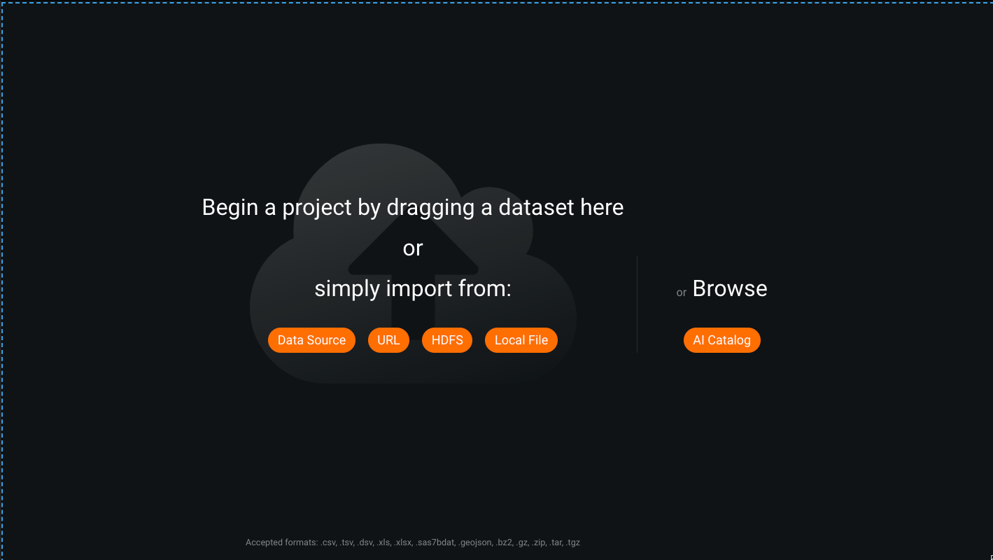 This includes from the AI Catalog, directly from a connected data source, or as a local file.