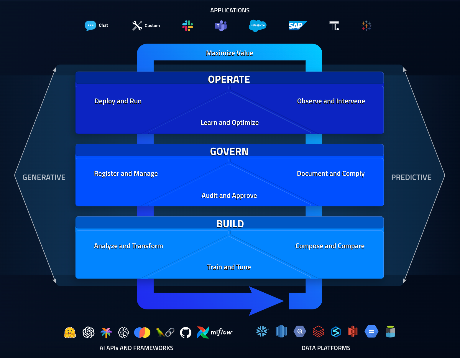 The application is organized by stages in the AI lifecycle: Build, govern, operate.