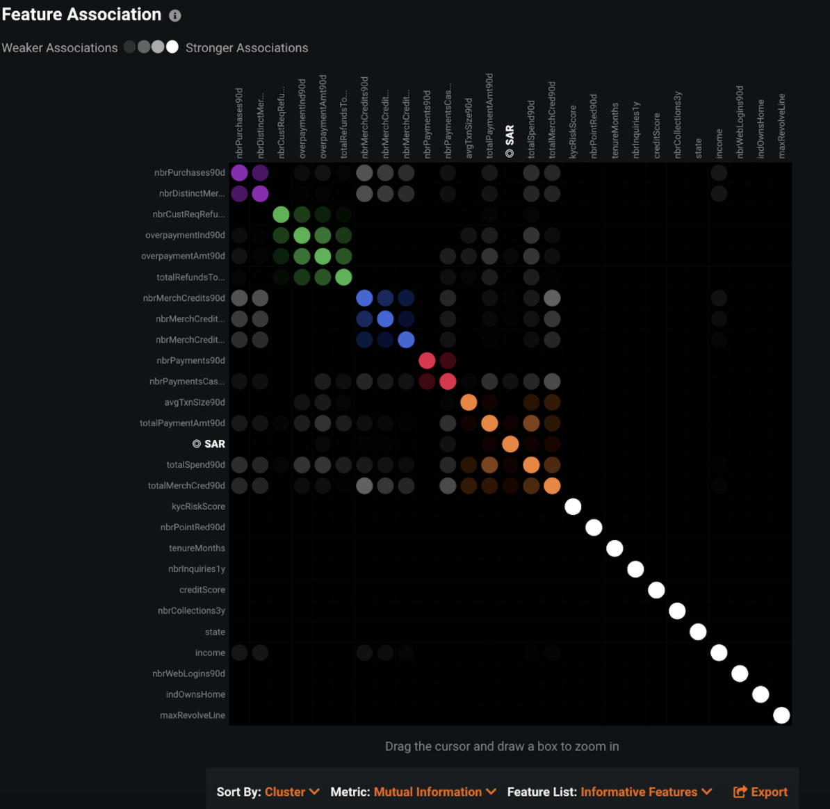 Prediction Explanations can also be used to cluster alerts into subgroups with different types of transactional behaviors, which could help triage alerts to different investigation approaches.