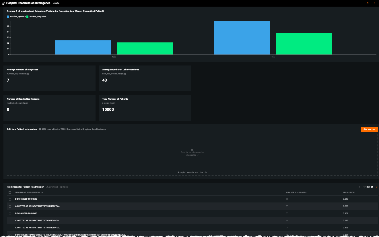 DataRobot provides clinicians with complete transparency on the top risk-drivers for every patient at any given time, enabling them to conduct intelligent interventions both before and after the patient is discharged. Reference the DataRobot documentation for an overview of model deployment.