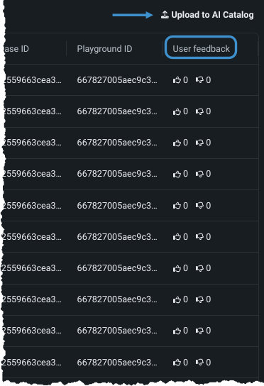 Scroll the page to the far right to see the user feedback. You can use this information for LLM fine-tuning.