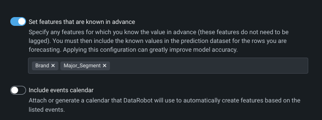 Set features that are known in advance—features that do not vary with time and are known at prediction time. In this example,