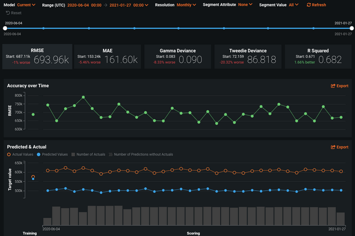 At this point, the Lambda is complete and ready to report any actuals data fed to it (i.e., the defined S3 location receives a file in the expected format). Set up a process to perform this operation once actual results arrive, then monitor and manage the model with DataRobot MLOps to understand how it’s performing for your use case.