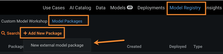 Navigate to the Model Registry > Model Packages > Add New Package and follow the instructions in the documentation.