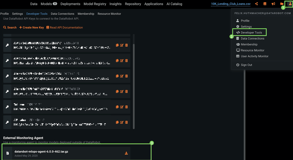 To download the MLOps monitoring agent directly from your DataRobot cluster: