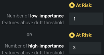 ) when at least one high-importance feature exceeds the set drift metric threshold; it is marked as "At Risk" (