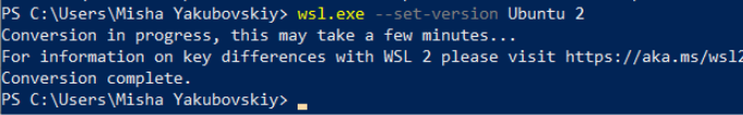 wsl.exe --set-version Ubuntu 2 wsl --set-default-version 2
