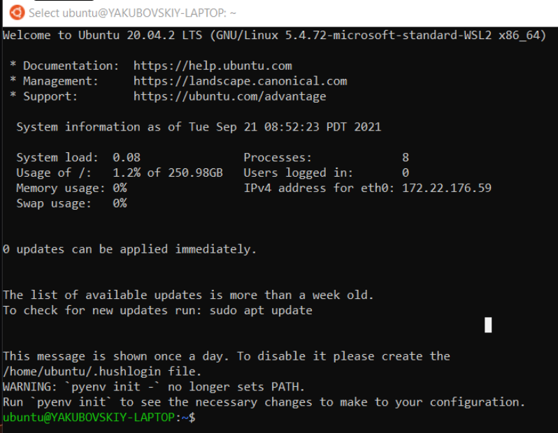 Because Ubuntu in WSL comes without Python or virtual environments installed, you must install pyenv, a Python version management program used on macOS and Linux. (Learn about managing multiple Python environments here.)