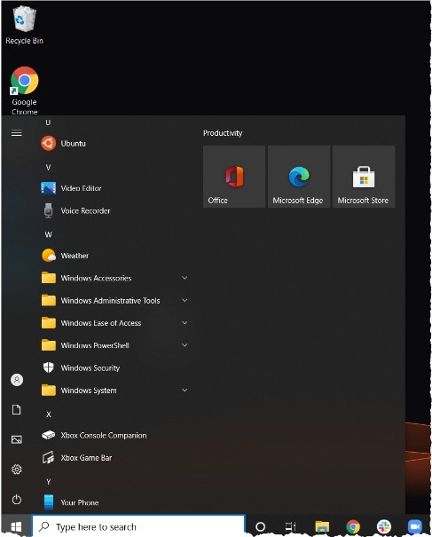 Install Ubuntu and launch it from the start prompt. Provide a Unix username and password to complete installation. You can use any credentials but be sure to record them as they will be required in the future.