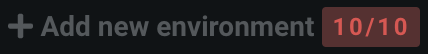 Next to the Add new environment and the New version buttons, there is a badge indicating how many environments (or environment versions) you've added and how many environments (or environment versions) you can add in total. With the correct permissions, an administrator can set these limits at a user, group, or organization level. The following status categories are available in this badge: