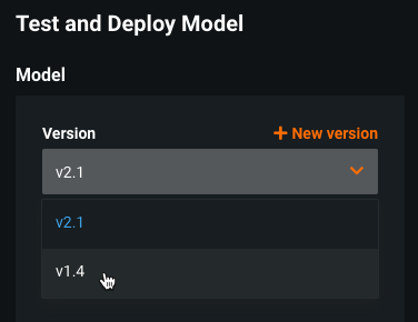 You can now use a new version of the model in addition to its previous versions. Select the iteration of the model that you want to use from the Version dropdown.