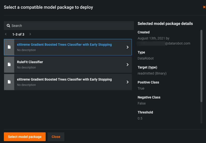After configuring the prediction environment and the management agent for use, you can create an external deployment with events monitored by the agent. The deployment must use the prediction environment configured in the steps above in order to support the agent's monitoring functionality. To do so, DataRobot recommends registering an external model package and deploying it from the Model Registry.