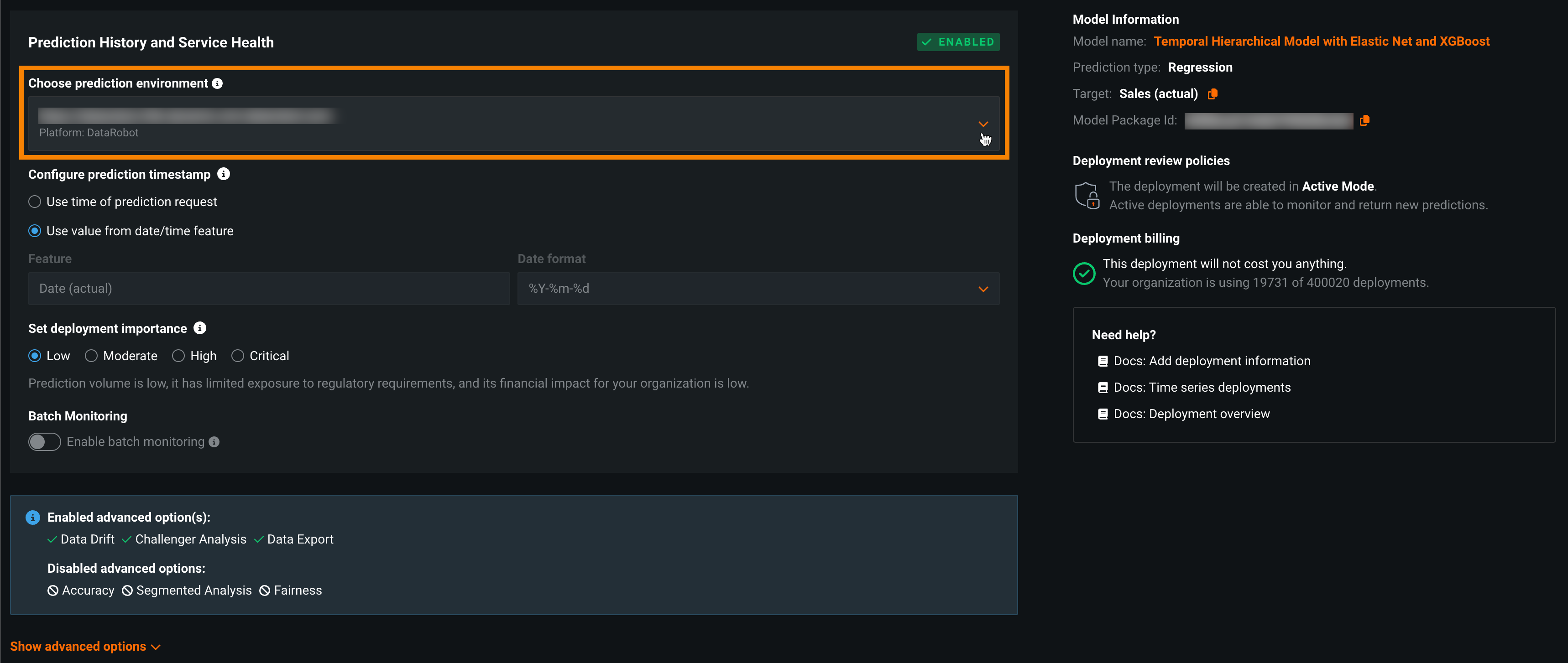 After you specify a prediction environment and create the deployment, you cannot change the prediction environment.