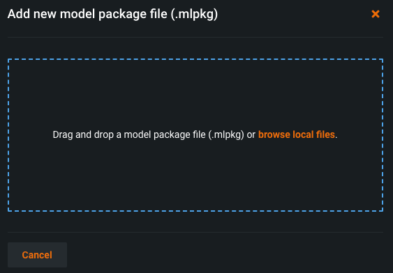 Browse for and upload, or drag-and-drop, the .mlpkg file you exported from DataRobot AutoML.