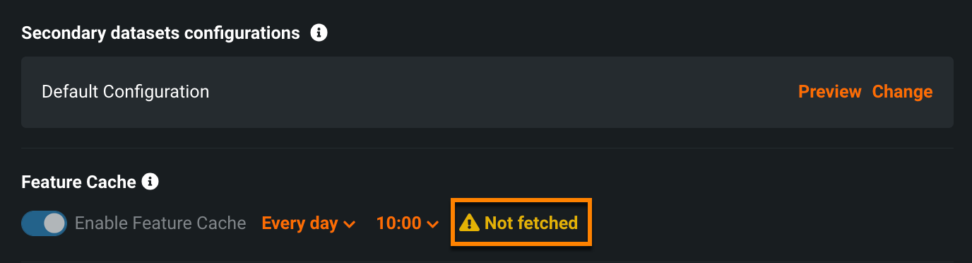 | Not fetched | Feature cache was configured but data hasn't been populated into feature cache yet. Predictions are impossible at the moment. |