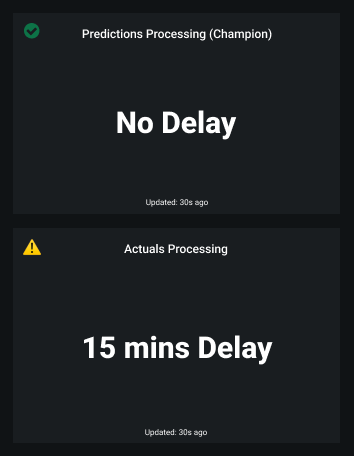 View the Predictions Timeliness and Actuals Timeliness tiles: