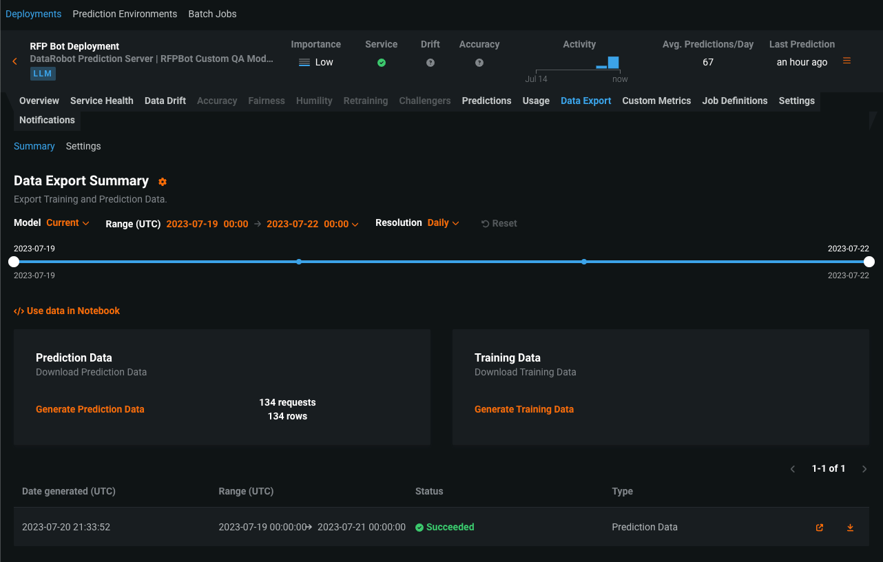 Monitoring support for generative models is a premium feature. Contact your DataRobot representative or administrator for information on enabling this feature.