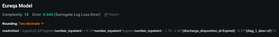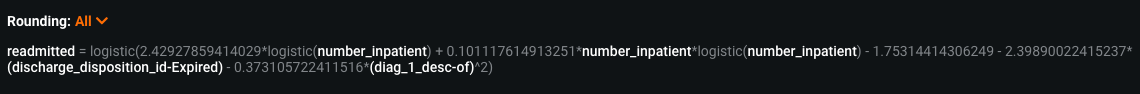 To improve readability, DataRobot shows constants to two decimal points of precision by default. You can change the precision displayed from the Rounding dropdown. Changes to the display do not affect the underlying model.