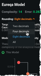 | 2 Decimal rounding | Sets the number of decimal places to display for rounding in Eureqa constants. |