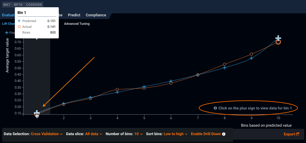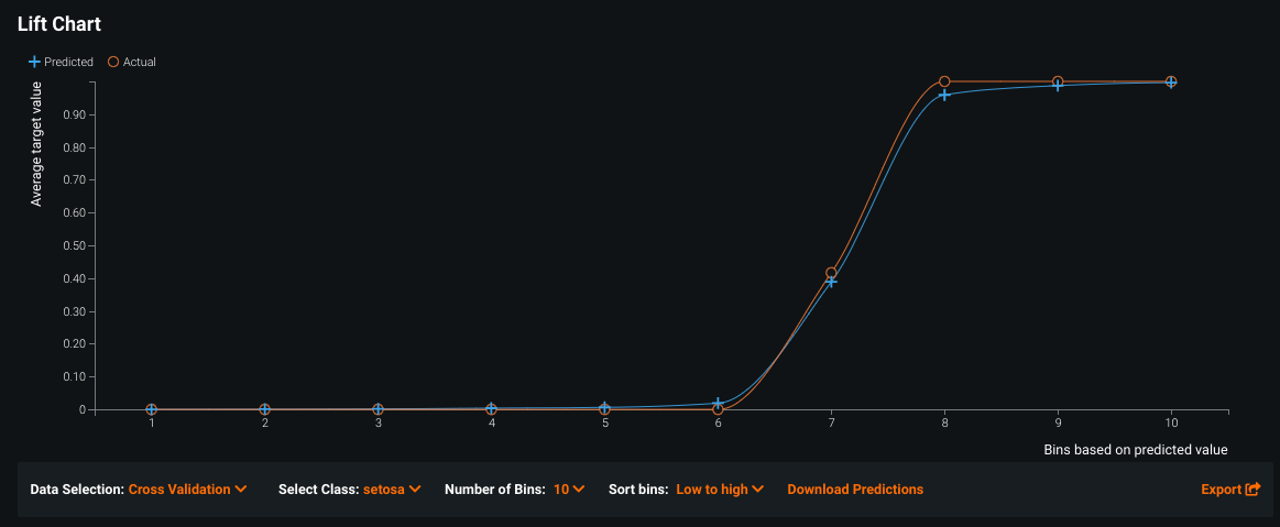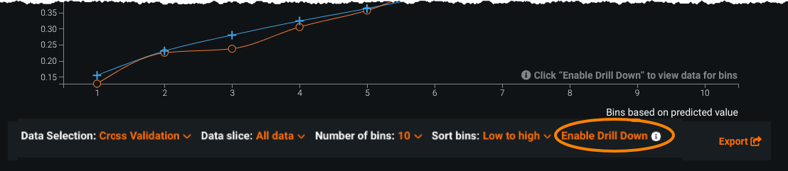 | Number of Bins | Adjusts the granularity of the displayed values. Set the number of bins you want predictions sorted into (10 bins by default); the more bins, the greater the detail. |