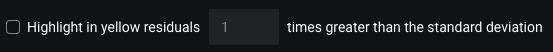 Enter a value to change the number of times greater the residuals must be than the standard deviation in order for the residuals to be highlighted. For example, if set to 3, the only points highlighted are those with values three times greater than the standard deviation. Highlighted residuals are represented by yellow points: