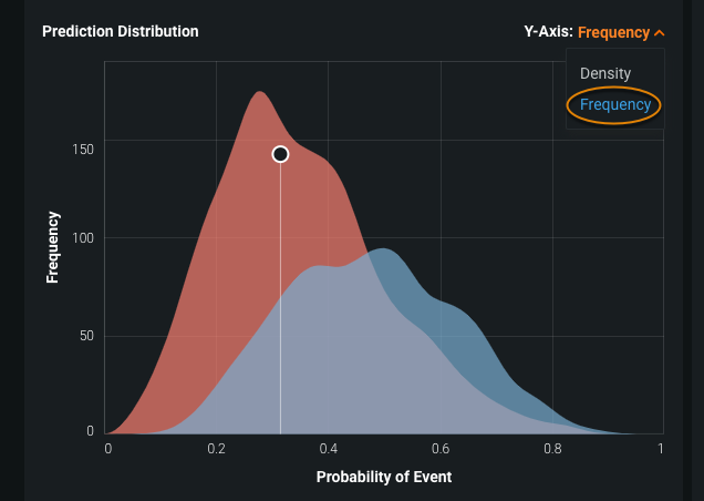 Select one of the following from the Y-Axis dropdown. The Y-Axis distribution selector allows you to choose between showing the Prediction Distribution graph as a density or frequency curve: