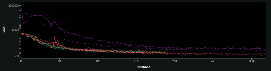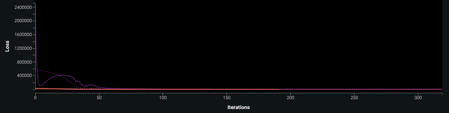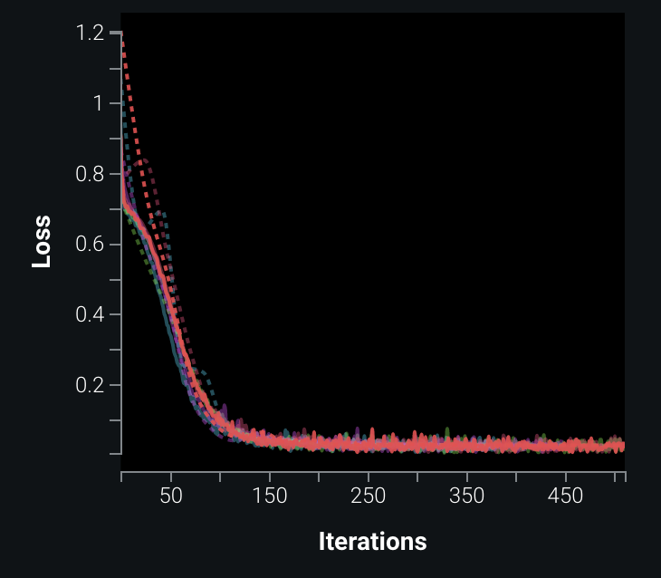 When plotting the training dataset, the loss should reduce (the curve should lower and flatten) as the number of iterations increases.