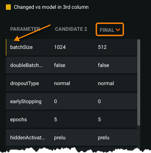 Use this information to inform decisions about which parameters to tune in order to improve the final model. For example, if a model improves in each candidate with an increased batch size, it might be worth experimenting with an even larger batch size.