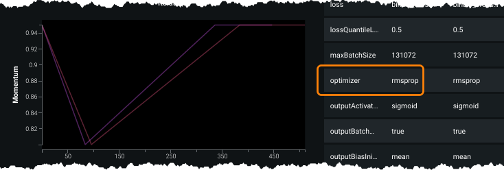 In the following example, the model uses adam (the default optimizer); the graph illustrates how momentum varies over the course of training.