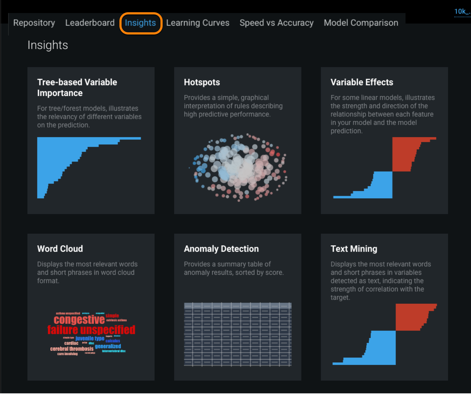 Navigate to Models > Insights and click an insight tile (see Insight visualizations for a complete list).