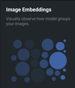 | Image Embeddings | Displays a projection of images onto a two-dimensional space defined by similarity. | Training data |