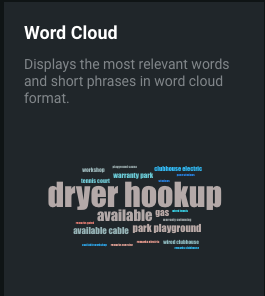 The Word Cloud insight displays up to the 200 most impactful words and short phrases in word cloud format.