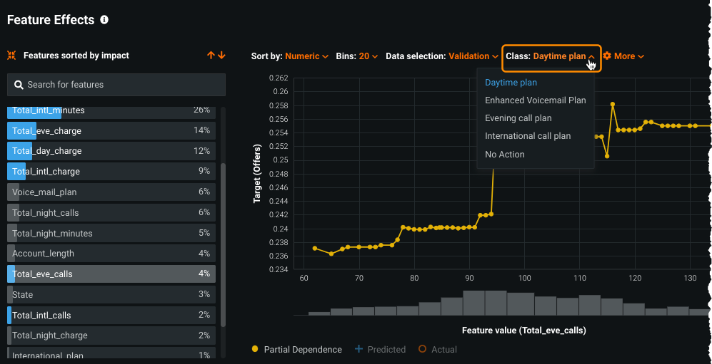 | 3 | Data Selection | Controls which partition fold is used as 1) the basis of the Predicted and Actual values and 2) the sample used for the computation of partial dependence. Options for OTV projects differ slightly. |