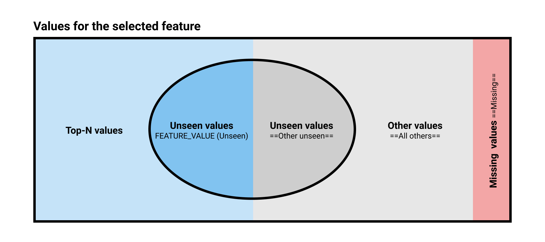 + A new value not present in Training or in top-3, flagged as Other Unseen
