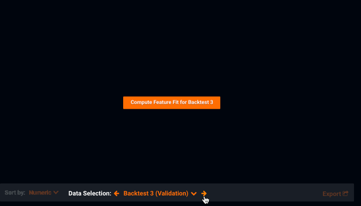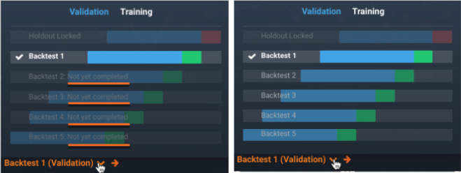 Once backtest calculations are complete for your needs, use the Data Selection control to choose the backtest and partition for display. The available partition folds are dependent on the backtest: