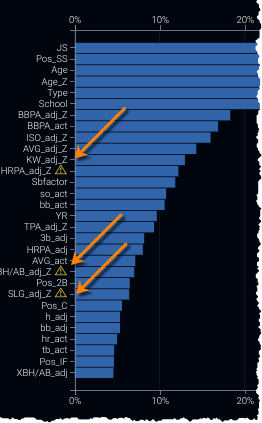 - DataRobot re-ranks the remaining features based on Step 3. It is the new ranking that the top X features are selected from a visualized.